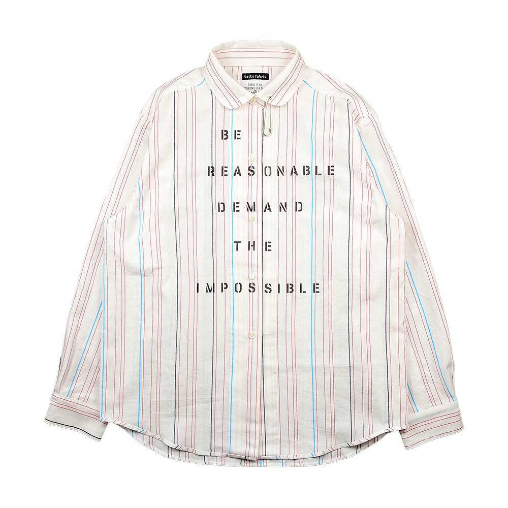 なお、今回、t.n.A.f.t.が制作するシャツはアナーキーシャツではなく、“BE REASONABLE DEMAND THE IMPOSSIBLE ”のスローガンがステンシルプリントされた「be reasonable shirt」です。