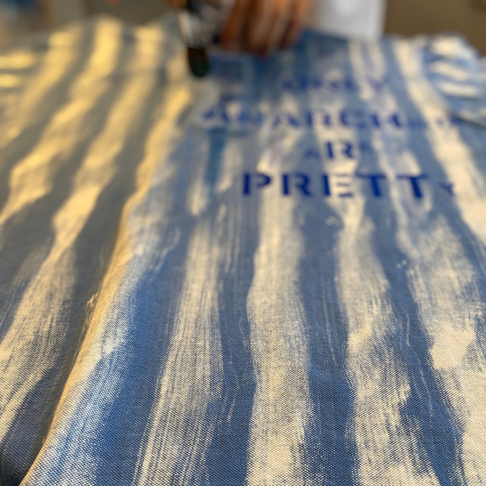 このブリーチのコントロールをする為にデザイナー大谷はブリーチの濃度の調整をして、幾度も試し描きをしました。