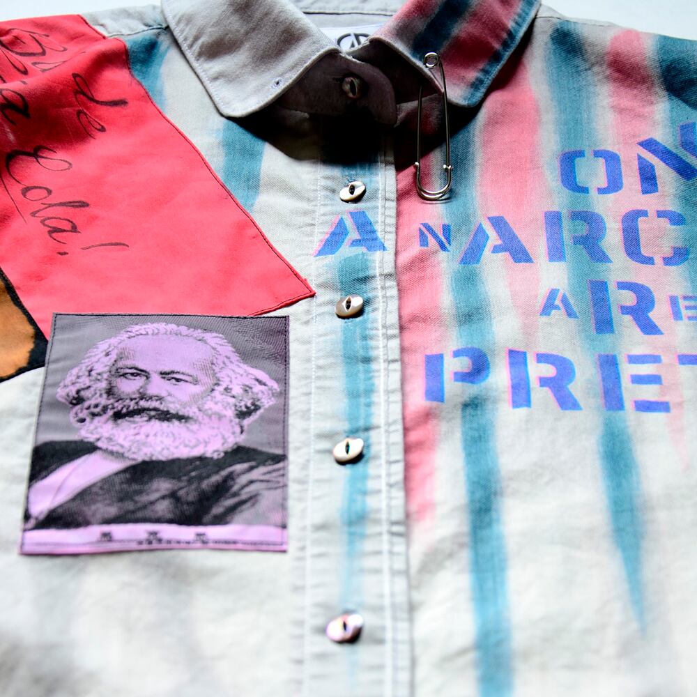 ヴィヴィアン・ウエストウッド、故マルコムマクラーレンが SEDITIONARIES時代に作り上げたアナーキーシャツをイメージしたシャツを制作しました。