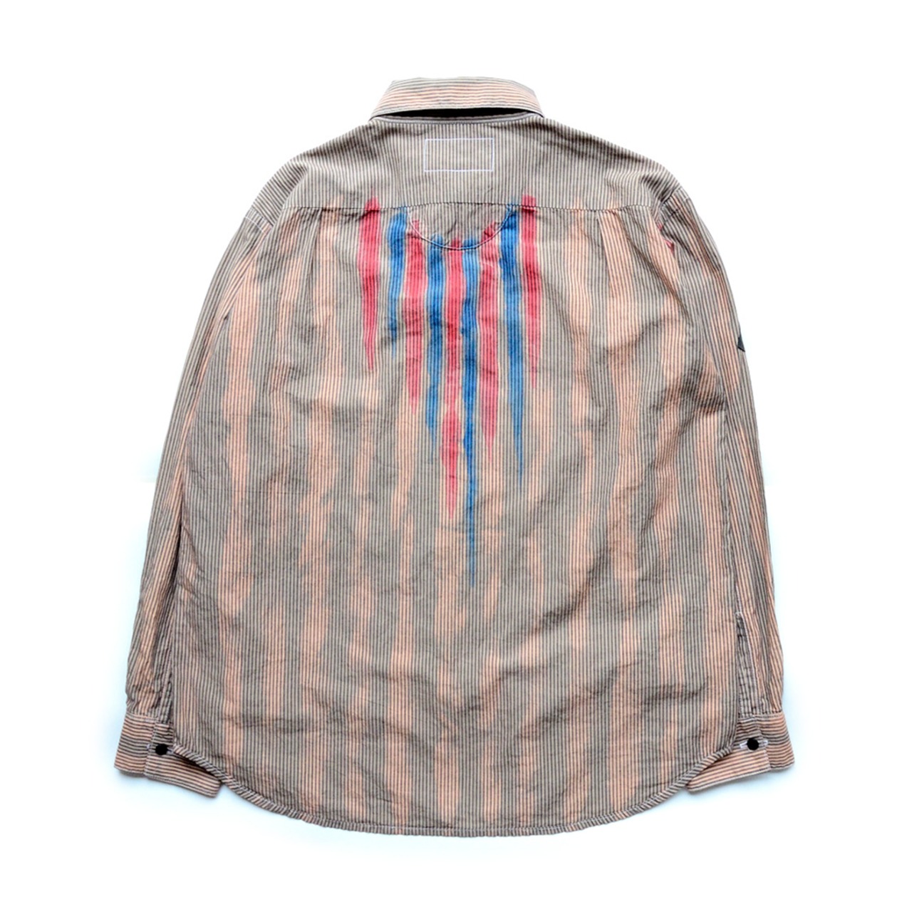 絶妙なストライプ幅で裏表のある生地を使用し、ベースとなるシャツをハンドメイドにて制作しております。